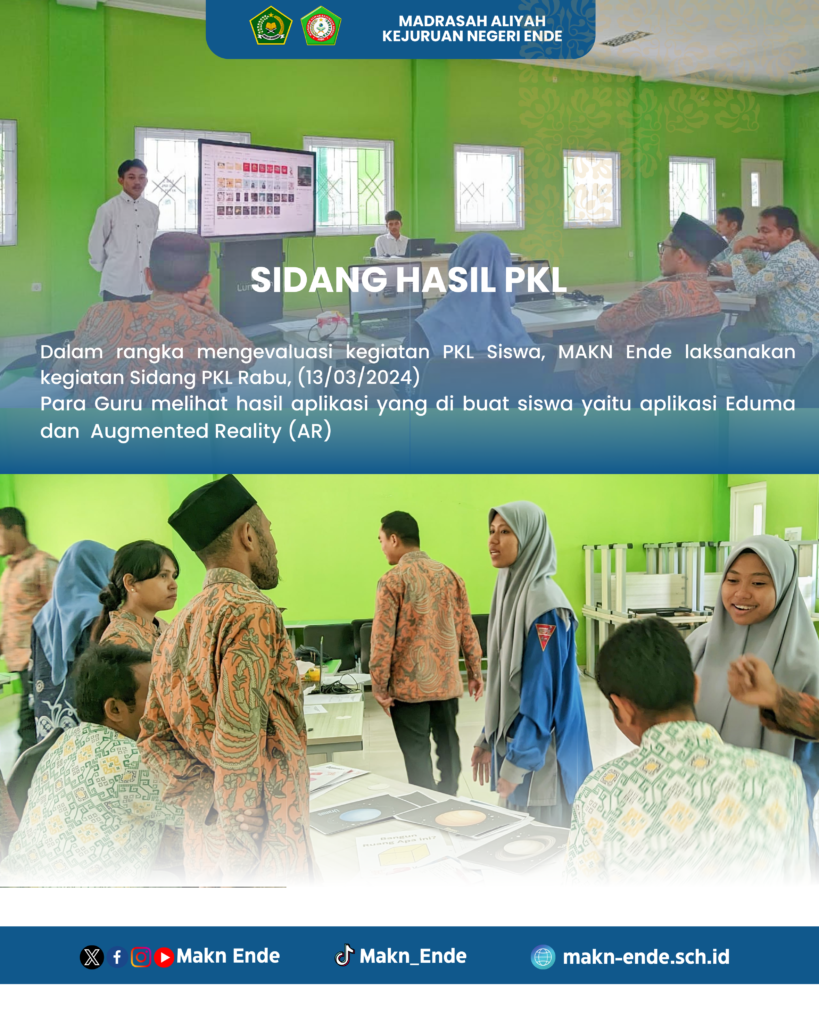 MAKN Ende (Humas)— Sebanyak 55 siswa MAKN Ende mengikuti kegiatan sidang praktek kerja lapangan (PKL) yang digelar Rabu, (13/03/2024) s/d Kamis, (14/3/2024) yang berlangsung secara tertutup di gedung laboratorium RPL